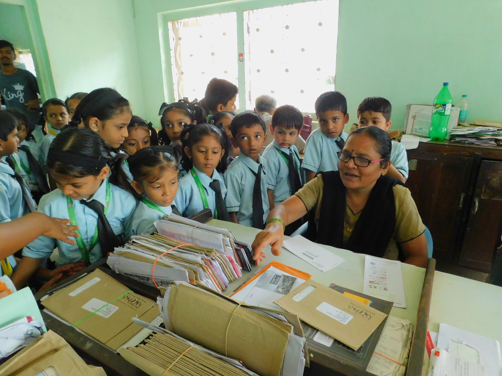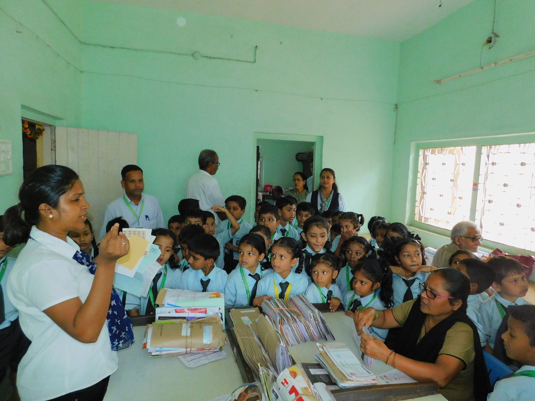 Excursions are means of educating ourselves on how certain things work and how we rely on certain services. School educational trips enhance students learning experience by providing opportunities to participate in activities outside their normal routine. We had such a learning opportunity by visiting the near by local post office at Vasai (W). The Students and teachers were welcomed warmly by the staff at the Post- office. The children were excited to see how letters were stamped, sorted and put into different pigeon holes as per the area they had to be delivered . The children were taken around to see various counters catering to the public. It was a wonderful learning experience for the children to see how a post office functions as this means of communication is becoming ancient. The children saw a letter box - they posted small letters in it. They were happy to meet the postman and see his shelf with loads of letters. The trip was full of fun and excitement and great learning about the post office in today's time of e-mails . As an educative and fun filled trip, it left a lasting impression on the young minds.